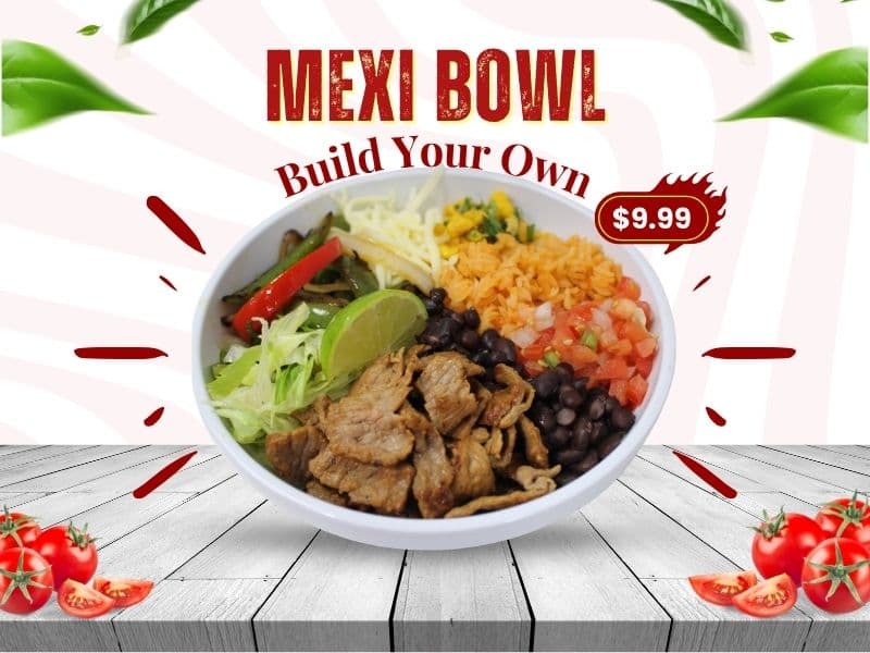 Get your favorite Mexi Bowls, Birria Tacos, and Steak Fajitas delivered hot and ready.
